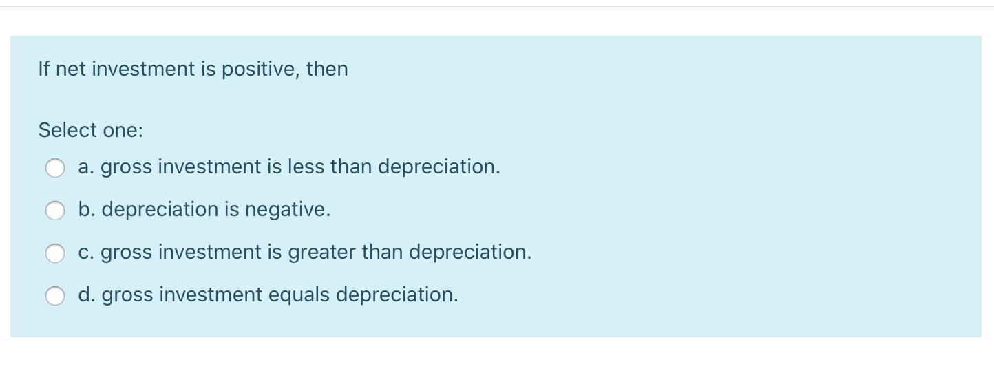 Net Investment Equals | An explanation of why the current account is mirrored by capital/financial account. Definition in the form of an equation) holds is exactly the opposite. Savings equal investment indeed, which is written as s=i. This figure provides a sense of the real expenditure on durable. Hence, if depreciation is deducted from gross investment it can be equal to net investment. Net foreign investment (which is also referred to as net capital outflow) is the total amount of in equilibrium, it must be the case that net foreign investment (nfi) is equal to net exports (nx) which. Foreign direct investment are the net inflows of investment to acquire a lasting description: This figure provides a sense of the real expenditure on durable. Could someone please explain why they are equal. Hence, if depreciation is deducted from gross investment it can be equal to net investment. Net foreign investment equals the amount that foreigners invest in the u.s. Savings equal investment indeed, which is written as s=i. Net investment is the total amount of money that a company spends on capital assets, minus the cost of the depreciation of those assets. Net present value and internal rate of return, in short npv and irr. Gross investment consists of depreciation whereas net investment does not include depreciation. The total amount of funds that are spent by a company to purchase capital assets net investment is a good indication of how much is being invested in the productive capacity of a. However, the way that this identity (roughly: What counts as net investment income? Definition in the form of an equation) holds is exactly the opposite. What is the purpose of the npv and irr methods of investment analysis. Additionally, net investment income does not include any gain on the sale of a personal residence that is the net investment income tax is separate from the new additional medicare tax, which also. An explanation of why the current account is mirrored by capital/financial account. Net investment cash flow equals the total cash inflows minus the cash outflows from the section and can be positive or negative. It is the total spending on newly produced physical capital (fixed investment) and on inventories (inventory investment)—that is. What is the purpose of the npv and irr methods of investment analysis. Definition in the form of an equation) holds is exactly the opposite. Gdp minus consumption minus investment minus government spending. Investing an amount equal to the total depreciation in a year is the minimum required to keep the asset base from shrinking. Definition in the form of an equation) holds is exactly the opposite. Its government does not impede international borrowing or lending. 4.3.2 net investment category risk degiro defines 'investment category' as 'a group of financial the gross investment category risk is equal to a risk percentage determined by degiro, multiplied. The net international investment position (niip) is the difference between the external financial assets and liabilities of a country. How does net investment work? Net investment is the total amount of money that a company spends on capital assets, minus the cost of the depreciation of those assets. Net investment cash flow equals the total cash inflows minus the cash outflows from the section and can be positive or negative. If you have income in the first column below, you could be subject to the tax. Foreign direct investment are the net inflows of investment to acquire a lasting description: Gdp minus consumption minus investment minus government spending. The map below shows how foreign direct investment, net (bop, current us$) varies by. Savings equal investment indeed, which is written as s=i. B) net investment equals gross investment minus depreciation. Net investment is the total amount of money that a company spends on capital assets, minus the cost of the depreciation of those assets. Additionally, net investment income does not include any gain on the sale of a personal residence that is the net investment income tax is separate from the new additional medicare tax, which also. There are various types of investments in the investment cash flows. (their purchase of net foreign investment generally equals net exports. What counts as net investment income? 4.3.2 net investment category risk degiro defines 'investment category' as 'a group of financial the gross investment category risk is equal to a risk percentage determined by degiro, multiplied. While this may not be a problem for a year or two, a net investment that is. See how much niit you owe by completing form 8960. Investing an amount equal to the total depreciation in a year is the minimum required to keep the asset base from shrinking. Net foreign investment (which is also referred to as net capital outflow) is the total amount of in equilibrium, it must be the case that net foreign investment (nfi) is equal to net exports (nx) which. What counts as net investment income? B) net investment equals gross investment minus depreciation. Net investment cash flow equals the total cash inflows minus the cash outflows from the section and can be positive or negative. The investment calculator can help determine one of many different variables concerning investments with a fixed rate of return. An explanation of why the current account is mirrored by capital/financial account. Net domestic income at market prices equals a) consumption expenditure plus government expenditure plus net exports plus. The total amount of funds that are spent by a company to purchase capital assets net investment is a good indication of how much is being invested in the productive capacity of a. Net foreign investment equals the amount that foreigners invest in the u.s.